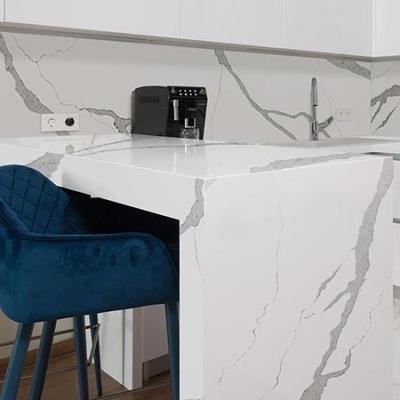 Hielite Quartz Classic- A quartz slabs with its clean whites and striking through-body veining, this new slab can make glass quartz countertops. Perfect for creating show-stopping quartz countertops and waterfall islands in kitchens, bathroom vanity tops, backsplash, showers, and floors in both residential and commercial environments. this lovely neutral quartz will not let you down. It is an absolutely contemporary material, an innovative and trendy product chosen by architects and interior designers for the creation of Kitchen Countertops, Bathroom Vanity Tops, Laboratory Counters, Reception Desk, Table Tops, Coffee Table, Window Sills, Stairs, Indoor Wall Cladding and Flooring.